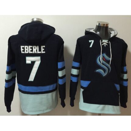 Men’s Seattle Kraken #7 Jordan Eberle Navy Ageless Must-Have Lace-Up Pullover Hoodie