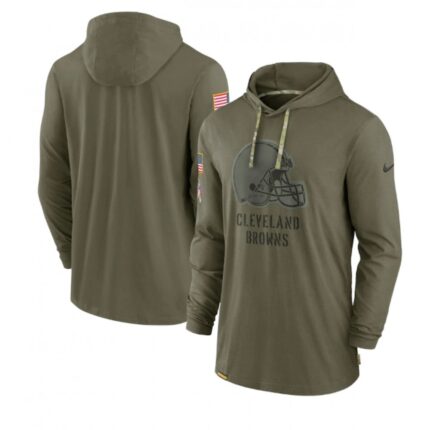 Men’s Cleveland Browns 2022 Olive Salute to Service Tonal Pullover Hoodie