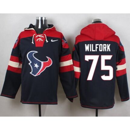 Nike Texans #75 Vince Wilfork Navy Blue Player Pullover NFL Hoodie