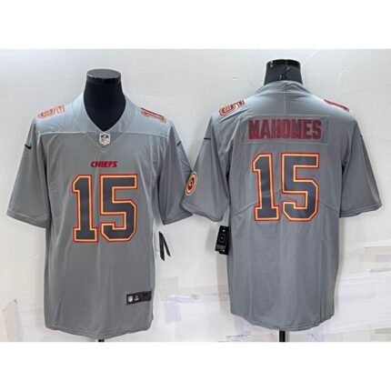 Men’s Kansas City Chiefs #15 Patrick Mahomes Grey With Patch Atmosphere Fashion Stitched Jersey