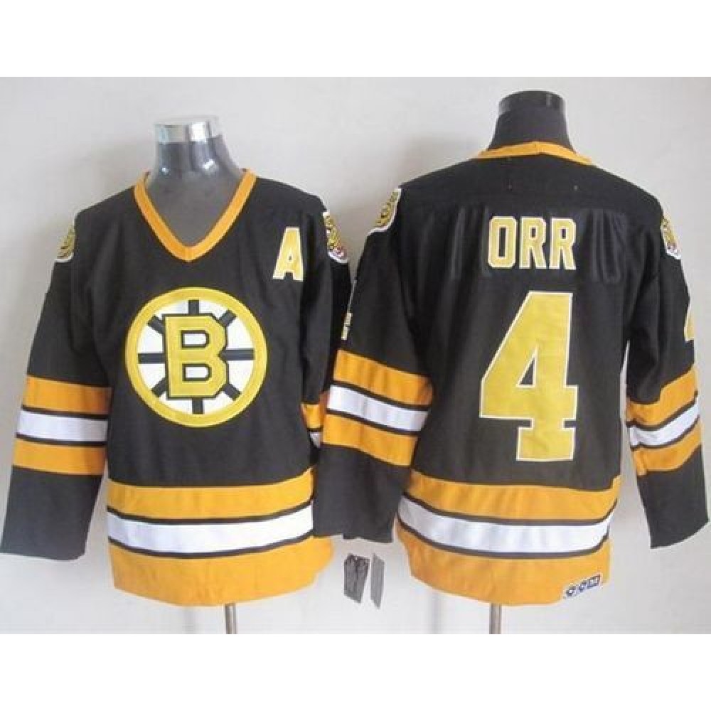 Bruins #4 Bobby Orr Black/Yellow CCM Throwback Stitched NHL Jersey quantity