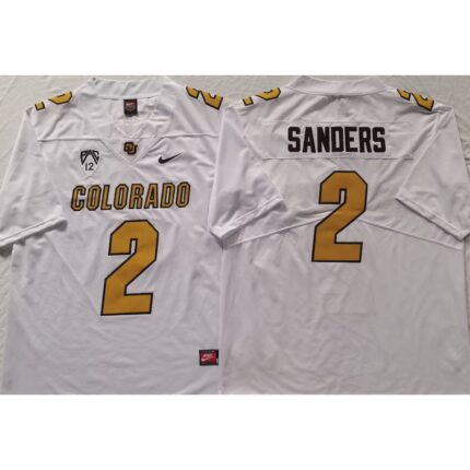 Men’s Colorado Buffaloes White #2 Sanders Stitched Jersey