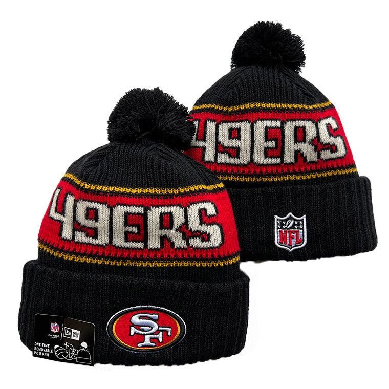 San Francisco 49ers Pom Knit Hat-Black