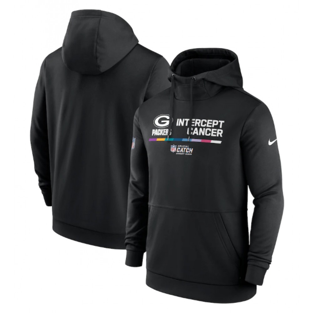 Men’s Green Bay Packers 2022 Black Crucial Catch Therma Performance Pullover Hoodie