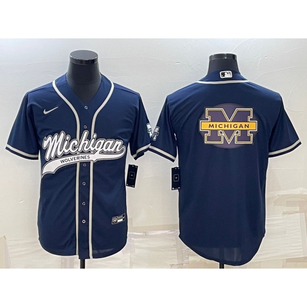 Men's Michigan Wolverines Blank Navy With Patch Cool Base Stitched Baseball Jersey