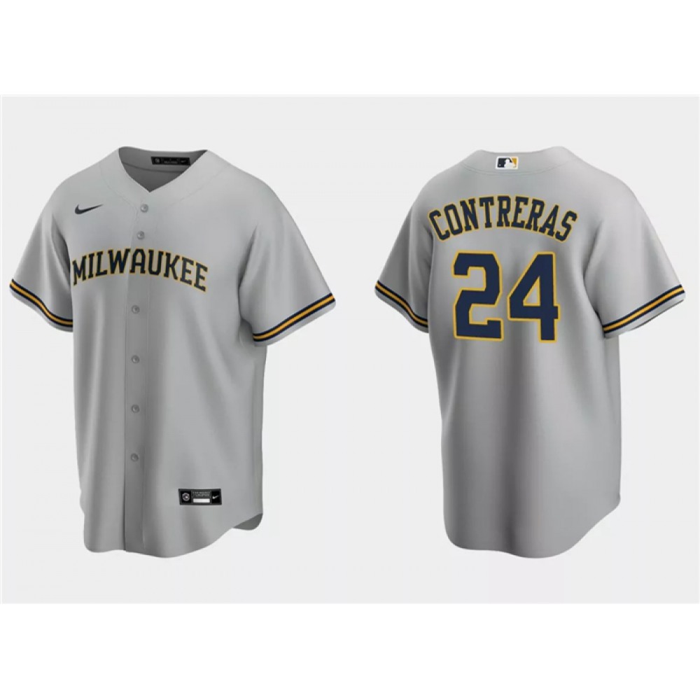 Men's Milwaukee Brewers #24 William Contreras Grey Cool Base Stitched Jersey quantity