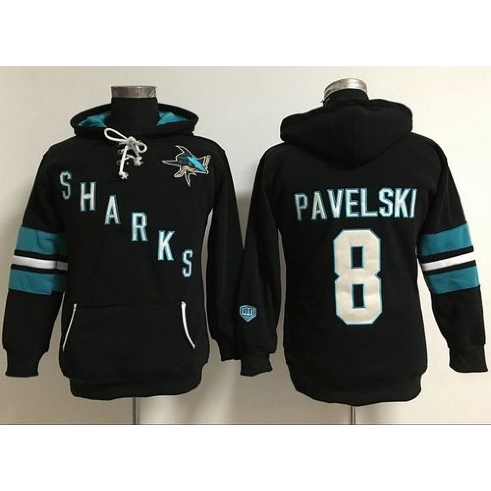 San Jose Sharks #8 Joe Pavelski Black Women’s Old Time Heidi Hoodie NHL Hoodie