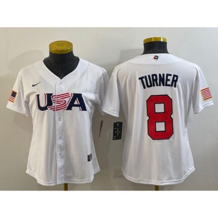 Youth USA Baseball #8 Trea Turner 2023 White World Baseball Classic Stitched Jersey