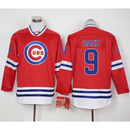 Cubs #9 Javier Baez Red Long Sleeve Stitched MLB Jersey
