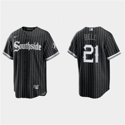 Men’s Chicago White Sox #21 George Bell Black 2021 City Connect Cool Base Stitched Jersey