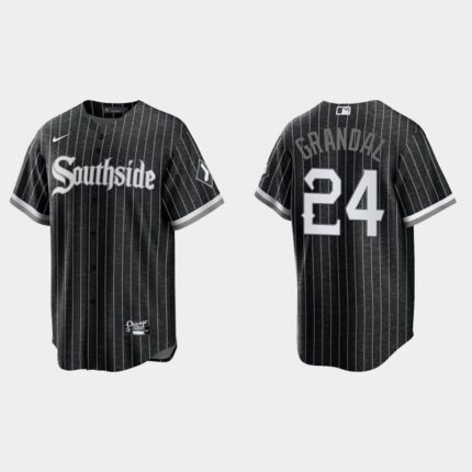 Men’s Chicago White Sox #24 Yasmani Grandal Black 2021 City Connect Cool Base Stitched Jersey