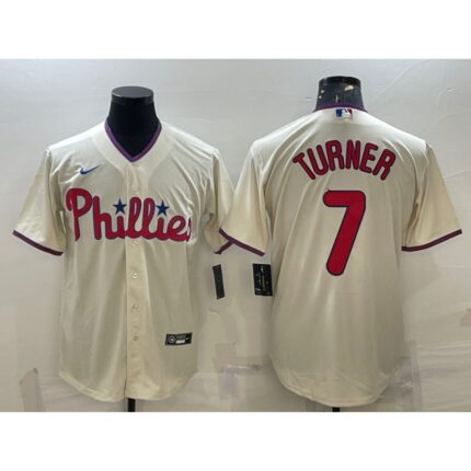 Men’s Philadelphia Phillies #7 Trea Turner Cream Cool Base Stitched Baseball Jersey