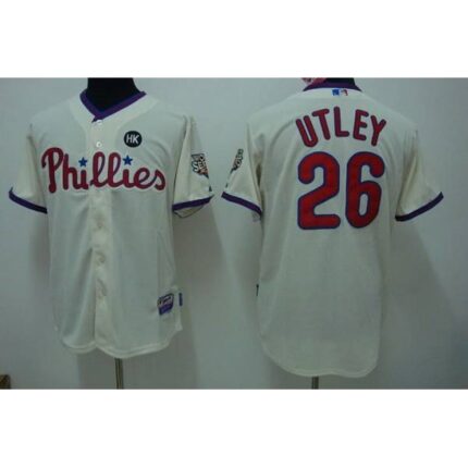 Phillies #26 Chase Utley Stitched Cream MLB Jersey