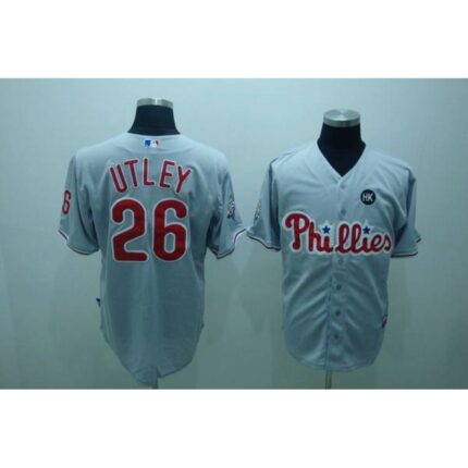 Phillies #26 Chase Utley Stitched Grey MLB Jersey