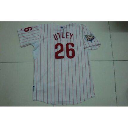 Phillies #26 Chase Utley Stitched White Red Strip MLB Jersey