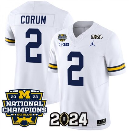 Men’s Michigan Wolverines #2 Blake Corum White 2024 F.U.S.E. With 2023 National Champions Patch Stitched Jersey