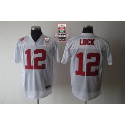Cardinal #12 Andrew Luck White 2014 Rose Bowl Patch Stitched NCAA Jersey