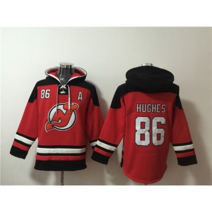 Men’s New Jersey Devils #86 Jack Hughes Red Ageless Must-Have Lace-Up Pullover Hoodie