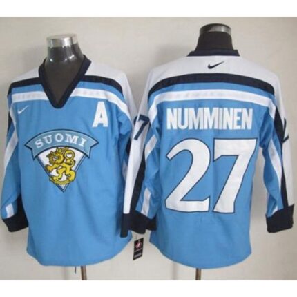 Jets #27 Teppo Numminen Light Blue Nike Throwback Stitched NHL Jersey