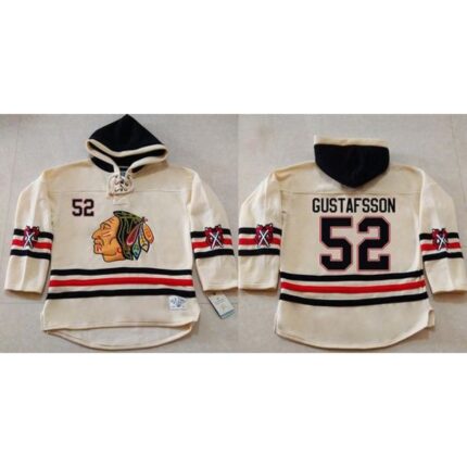 Blackhawks #52 Erik Gustafsson Cream Heavyweight Pullover Hoodie Stitched NHL Jersey