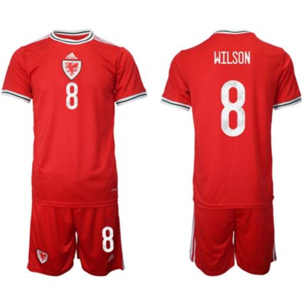 Men’s Wales #8 Wilson Red Home Soccer Jersey Suit