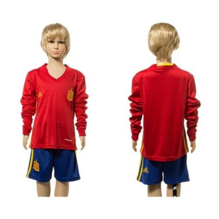 Spain Blank Red Home Long Sleeves Kid Soccer Country Jersey