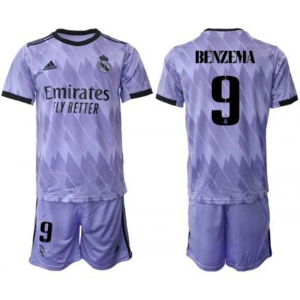 Men’s Real Madrid #9 Karim Benzema 22/23 Purple Away Soccer Jersey Suit