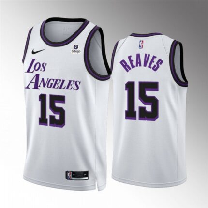 Men’s Los Angeles Lakers #15 Austin Reaves White City Edition Stitched Basketball Jersey