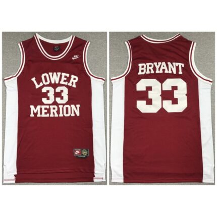 Men’s Los Angeles Lakers #33 Kobe Bryant Red Lower Merion High School Stitched Jersey