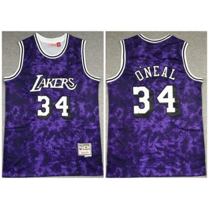 Men’s Los Angeles Lakers #34 Shaquille O’Neal Purple Throwback Stitched Jersey