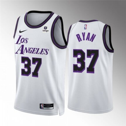 Men’s Los Angeles Lakers #37 Matt Ryan White City Edition Stitched Basketball Jersey