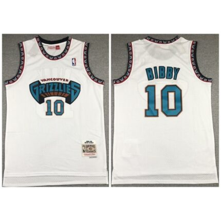 Men’s Memphis Grizzlies #10 Mike Bibby White Throwback Stitched Jersey