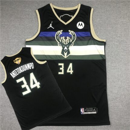 Men’s Milwaukee Bucks #34 Giannis Antetokounmpo 2021 NBA Finals Black Statement Edition Stitched Jersey