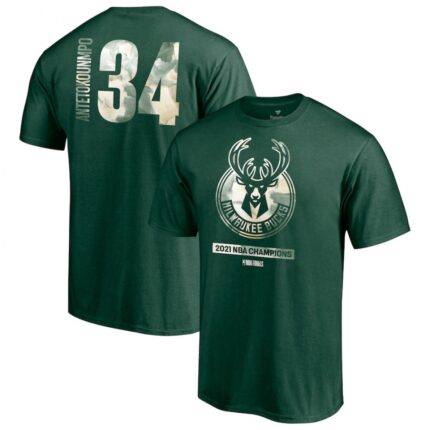 Men’s Milwaukee Bucks #34 Giannis Antetokounmpo 2021 Finals Champions T-Shirt