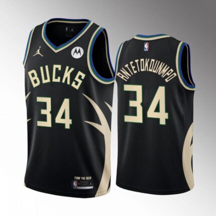 Men’s Milwaukee Bucks #34 Giannis Antetokounmpo 2022/23 Black Statement Edition Stitched Basketball Jersey