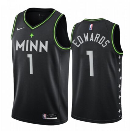 Men’s Minnesota Timberwolves #1 Anthony Edwards Black City Swingman Stitched Jersey