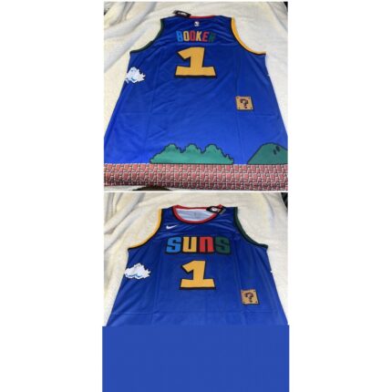 Men’s Phoenix Suns #1 Devin Booker Blue 2022/23 City Edition With Black payple Logo Stitched Basketball Jersey