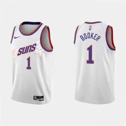 Men’s Phoenix Suns #1 Devin Booker White 2023 Association Edition Stitched Basketball Jersey