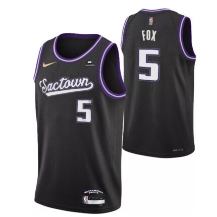 Men’s Sacramento Kings #5 De’Aaron Fox Black City Edition Stitched Jersey