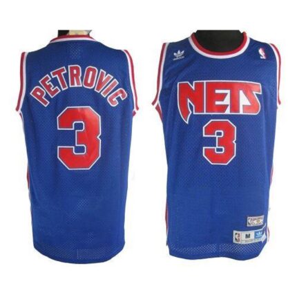 Nets #3 Drazen Petrovic Blue Stitched Throwback NBA Jersey