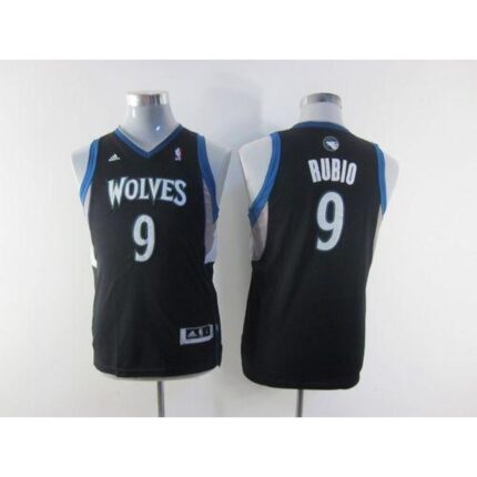 Timberwolves #9 Ricky Rubio Black Stitched Youth NBA Jersey