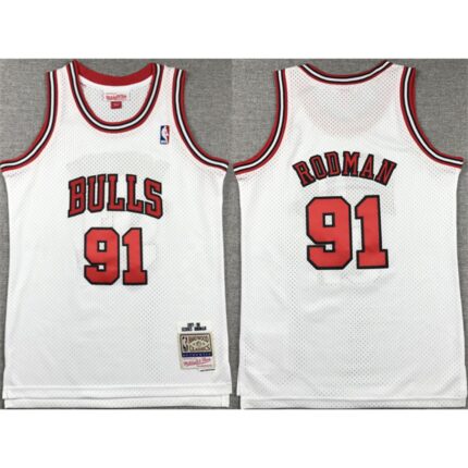 Youth Chicago Bulls #91 Dennis Rodman White Stitched Basketball Jersey