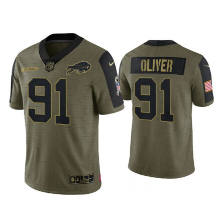 Men’s Buffalo Bills #91 Ed Oliver 2021 Olive Salute To Service Limited Stitched Jersey