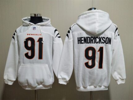 Cincinnati Bengals white Hoodie #91 HENDRICKSON (with pockets)
