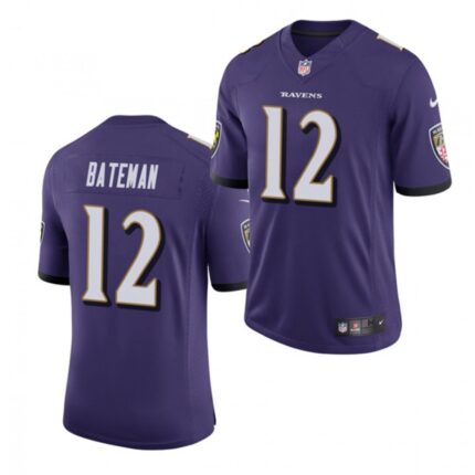Men’s Baltimore Ravens #12 Rashod Bateman Purple 2021 Vapor Untouchable Limited Stitched Jersey