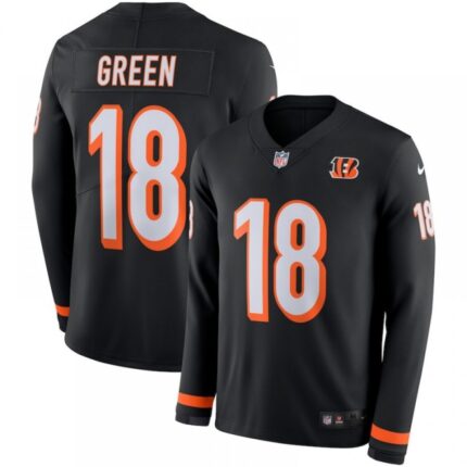 Men’s Cincinnati Bengals #18 A.J. Green Black Therma Long Sleeve Stitched NFL Jersey