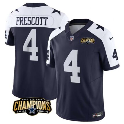 Men’s Dallas Cowboys #4 Dak Prescott Navy/White 2023 F.U.S.E. NFC East Champions Patch Stitched Football Jersey