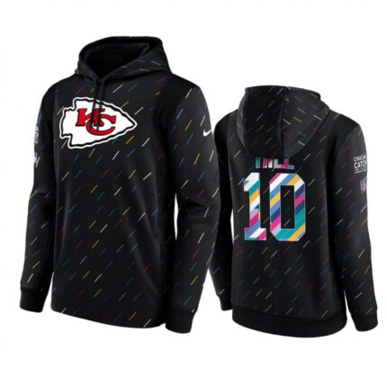Men’s Kansas City Chiefs #10 Tyreek Hill 2021 Charcoal Crucial Catch Therma Pullover Hoodie