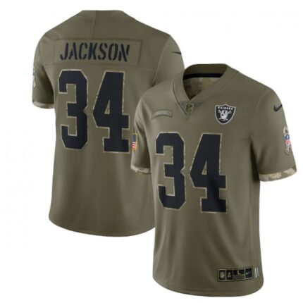 Men’s Las Vegas Raiders #34 Bo Jackson Olive 2022 Salute To Service Limited Stitched Jersey