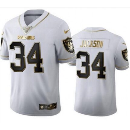 Men’s Las Vegas Raiders #34 Bo Jackson White Golden Editon Limited Stitched Jersey